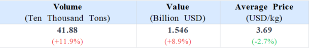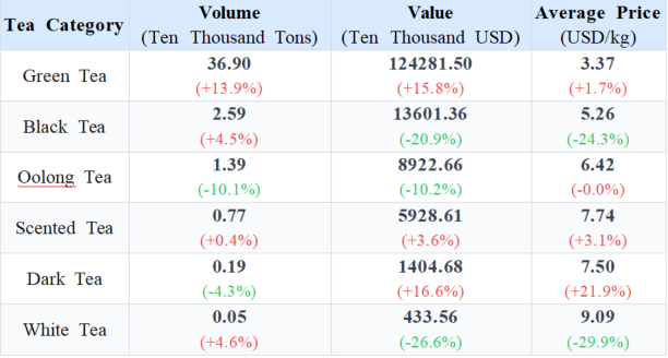 According to customs data, in 2025, Chinese mainland tea export volume was 418.8 thousand tons, with an export value of approximately 1.546 billion US dollars, representing year-on-year increases of 11.9% and 8.9% respectively. The average price was 3.69 USD/kg, a decrease of 2.7% year-on-year.